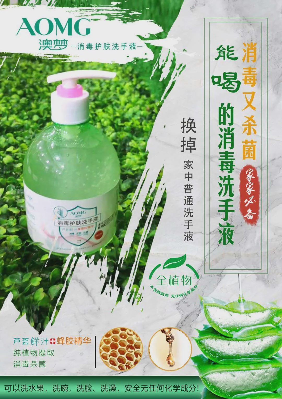 澳梦消毒护肤洗手液是一款革命性的颠覆普通洗手液概念的一款全植物创新的洗手液。在含有75%食用酒精的基础上,添加了芦荟鲜汁、蜂胶提取物和食用植物提取的甘油,而且发泡剂用的是椰子油提取物,这样既能消毒杀菌,还能护肤嫩肤,同时可以用来洗脸、洗澡、刷牙、洗碗、洗果蔬等。功能多多,全面消毒,只要1瓶就搞定!