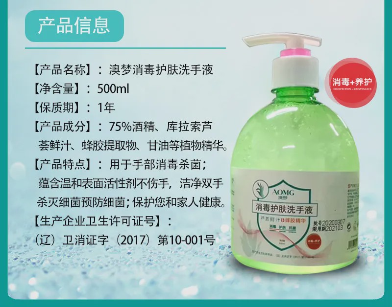 此外,我们在选择洗手液时,也应该考虑是否能保湿护肤。因为使用含酒精的洗手液,在酒精挥发时会带走我们皮肤的一些水分,让手部更干燥。根据以上的几点,那怎样的洗手液才是最合适的呢?澳梦消毒护肤洗手液,就根据皮肤消毒标准,加入了75%酒精,而且是食用酒精。它得到国家批准的消毒抗菌生产许可,还通过了质检,可以有效消毒杀菌!
